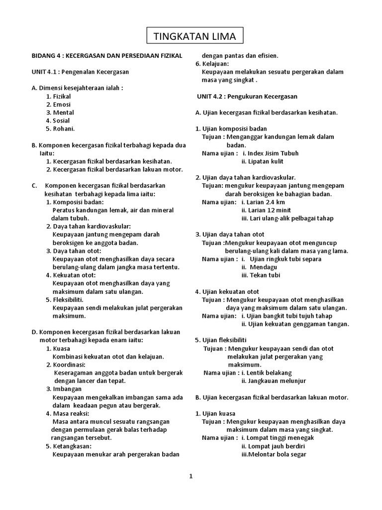 TINGKATAN LIMA BIDANG 4. View flipping ebook version of Sains_Sukan_Tingkatan_5 published by Jeff Fakhruddin on 2020-04-14. Share nota sains sukan penggal 1 2 3 everywhere for free.