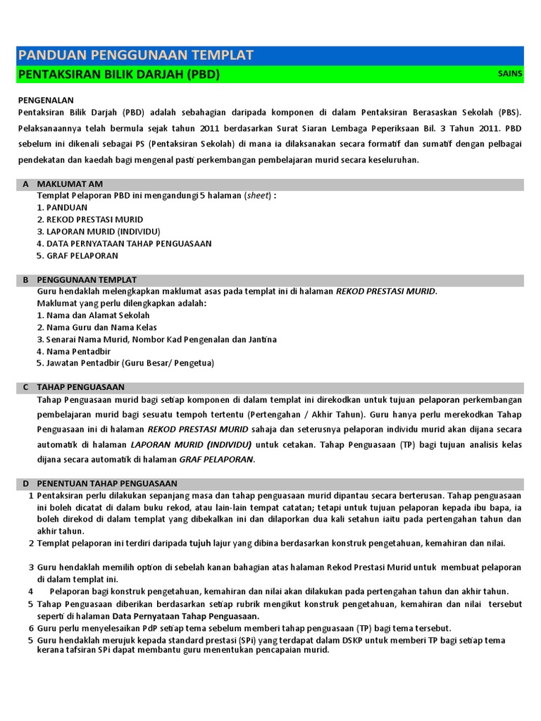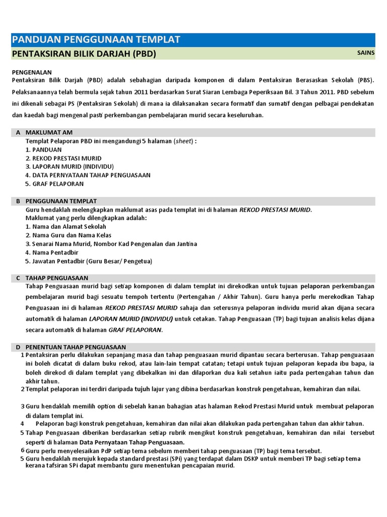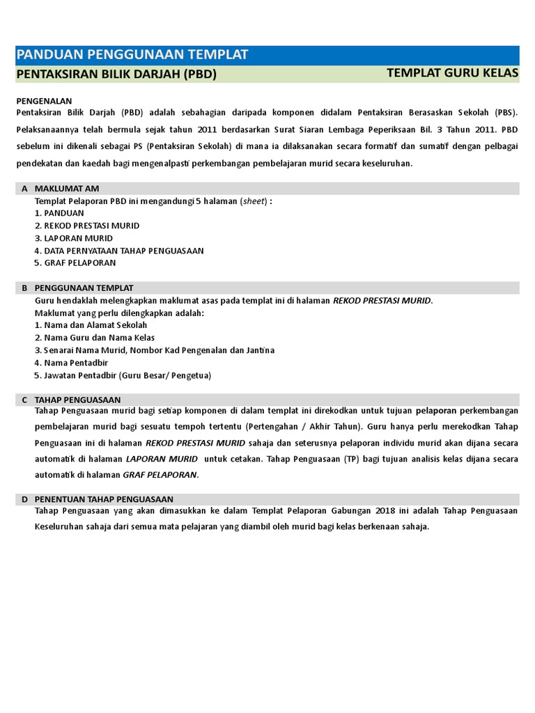 Templat Pelaporan Pentaksiran Bilik Darjah Pbd Versi 3 0 Baru Pendidik2u